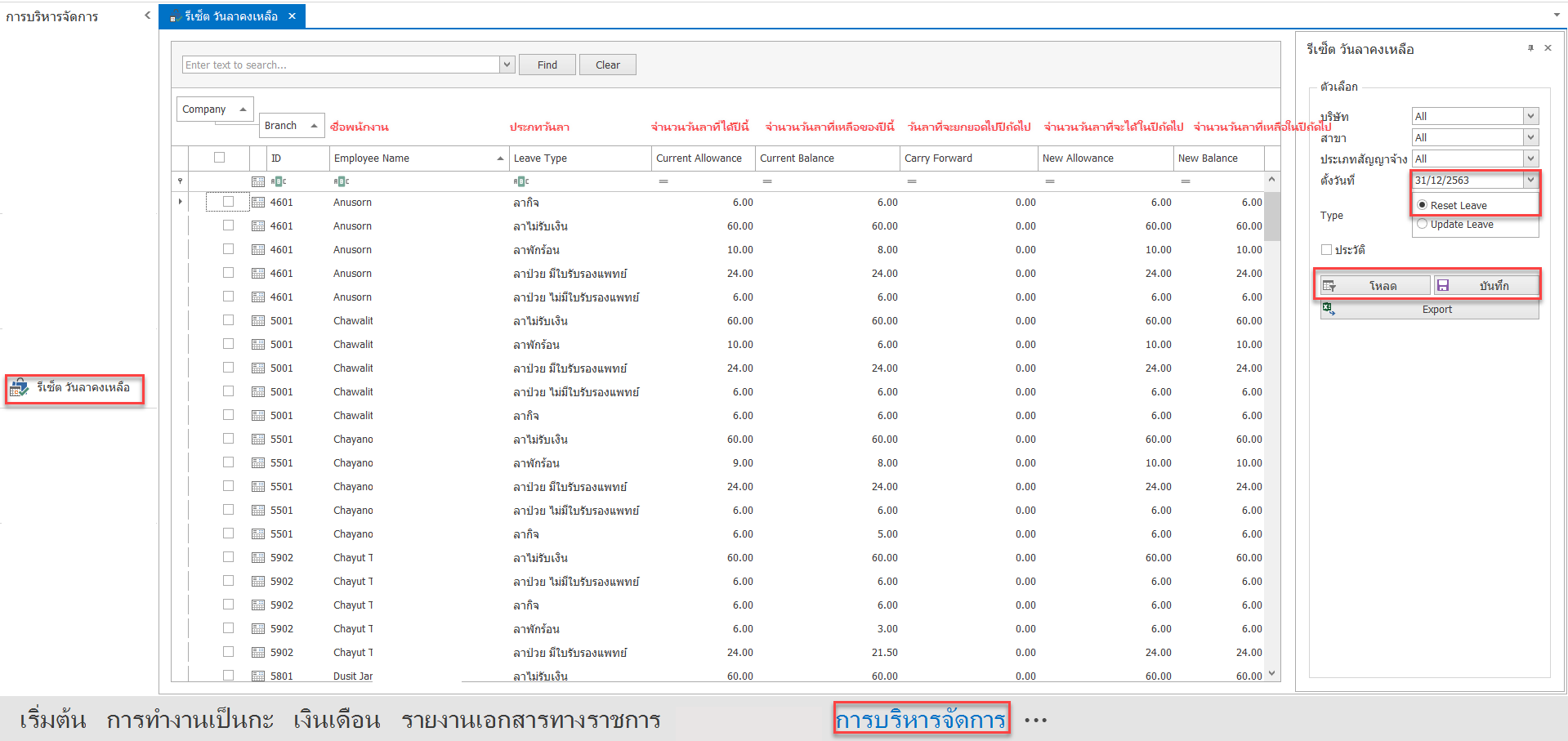 Reset Leave Balance/รีเซ็ตวันลาคงเหลือ