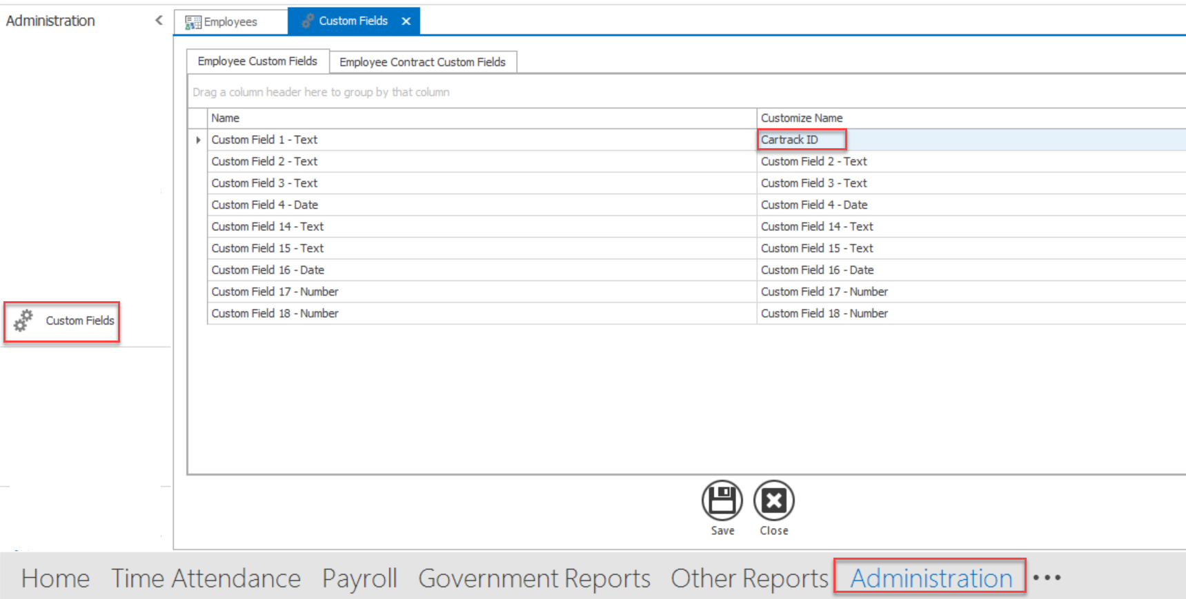 3. หน้า Administration -->> Custom Fields เลือก Customize Name แล้วเปลี่ยนชื่อตามที่ต้องการได้