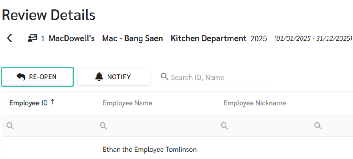 - หากต้องการแก้ไขต้องการ Re-open เพื่อเปิดรอบการประเมินเดิมขึ้นมาอีกครั้ง