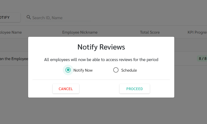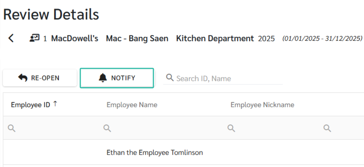 หลังจากปิดการประเมินเรียบร้อยแล้ว แอดมินสามารถทำการ แจ้งผลการประเมิน KPI ให้พนักงาน ได้